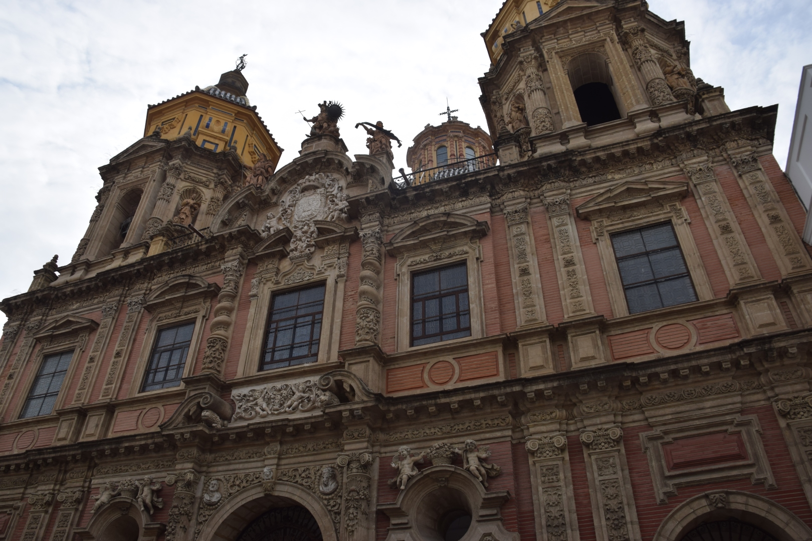 Desde la fachada que combina piedra, ladrillo y torres octogonales, hasta el interior de planta de cruz griega dominado por una gran cúpula y decorado con columnas salomónicas, espejos, mármoles y retablos de talla exquisita, el edificio muestra la ambición estética y espiritual de los jesuitas en Sevilla.